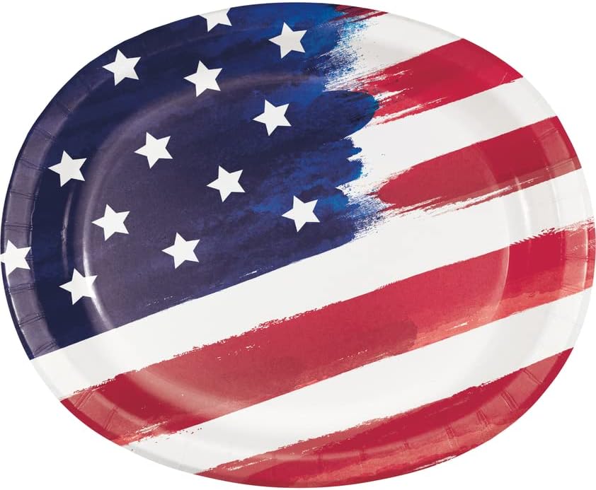 24 Fantabulous Painterly Patriotic Oval Paper Plates: Get ready to serve up some fun with these disposable plates, measuring a generous 10" x 12"! Super Sturdy Plates for All Your Tasty Treats: No more worrying about flimsy plates! These sturdy paper plates have got you covered for all your serving needs. 4th of July Party Perfection: Dazzle your guests at your 4th of July bash with these stunning Painterly Patriotic plates! Harmonious Coordination with Painterly Patriotic Party Supplies: Effortlessly elevate your celebration's aesthetic by coordinating with all the other fabulous Painterly Patriotic party supplies!