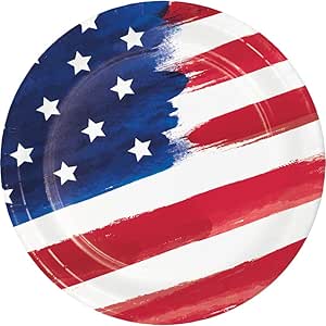 24 Painterly Patriotic Paper Plates Disposable plates measure 9" Sturdy paper plates for all your serving needs Perfect for 4th Of July parties